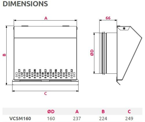 AwentapPRO VCSM160 beszívó oldali fém fali rács, rovarhálóval (több színben)